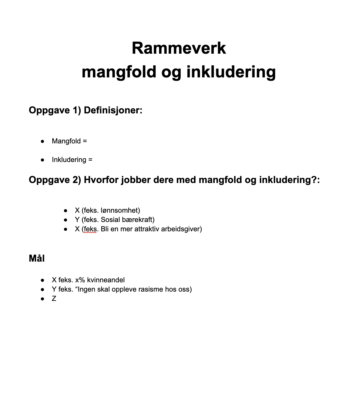 I dagens innlegg deler jeg en konkret mal for mangfoldsstrategi – den samme jeg bruker i arbeidet med kunder. Fyller dere ut alle punktene, får dere et solid fundament og er godt på vei mot målbare resultater.